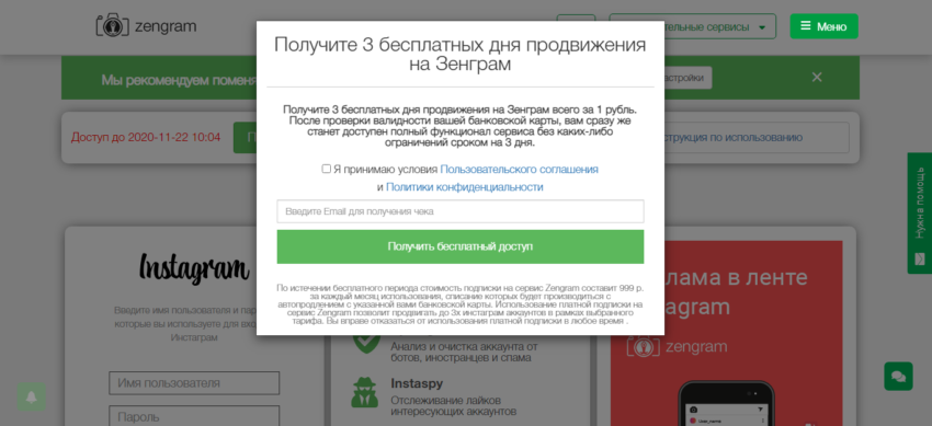 Zengram – это платный сервис для продвижения в инстаграме. Благодаря ему можно привлечь больше людей на свой аккаунт и получить больше подписчиков, лайков и комментариев. Помимо этого, можно также запустить автоматическую подписку.