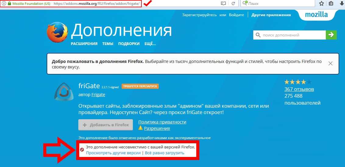 Вы не сможете установить friGate, если у вас на компьютере стоит устаревшая версия браузера.