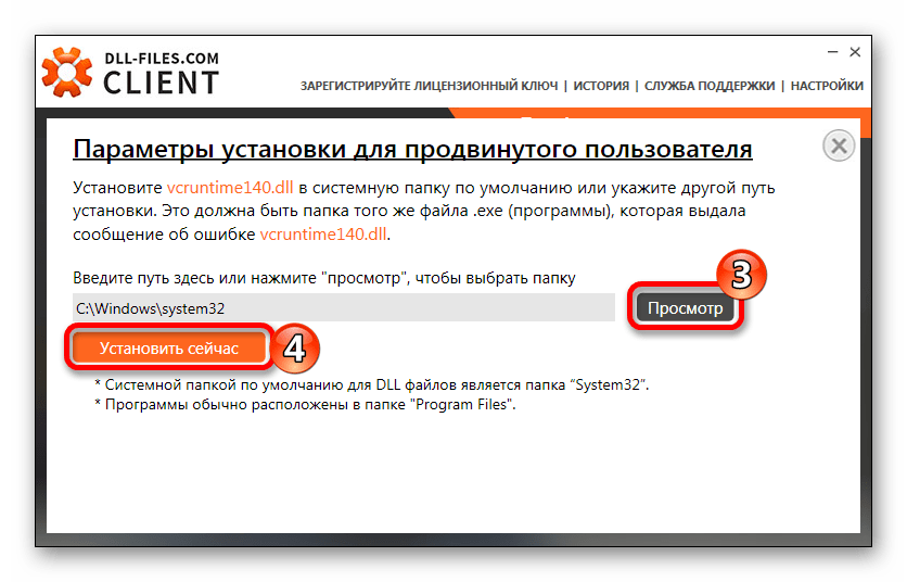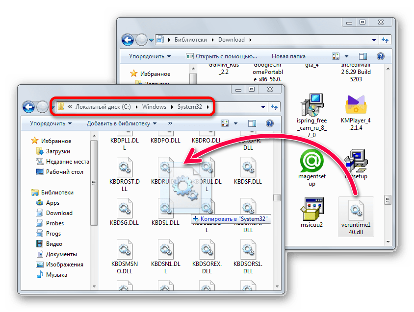 Адрес копирования DLL файлов меняется так же, как и в случае с установкой пакета Visual C++ Redistributable. Например, ОС Windows 7 или Windows 10 с разрядностью в 64 бита будет иметь другой адрес для установки, чем та же Windows с разрядностью х86. Более подробно о том, как и в какое место устанавливать DLL, в зависимости от операционной системы, можно узнать из этой статьи. Чтобы провести регистрацию библиотеки, обратитесь к другой нашей статье. Эта процедура нужна в нестандартных ситуациях, обычно она не требуется.